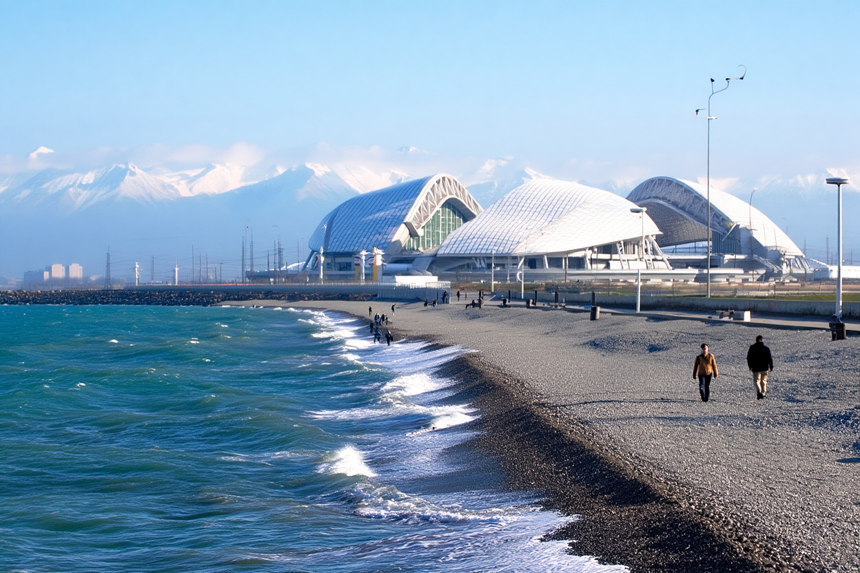 Центральная набережная от реки Мзымта вдоль улицы Просвещения погружает в классическую курортную атмосферу. Здесь пахнет морем, слышен шум волн и музыка из прибрежных кафе. Имеретинская набережная у Олимпийского парка — это современная зона для прогулок с широкими променадами, скамейками и живописными видами, мариной и ресторанами.