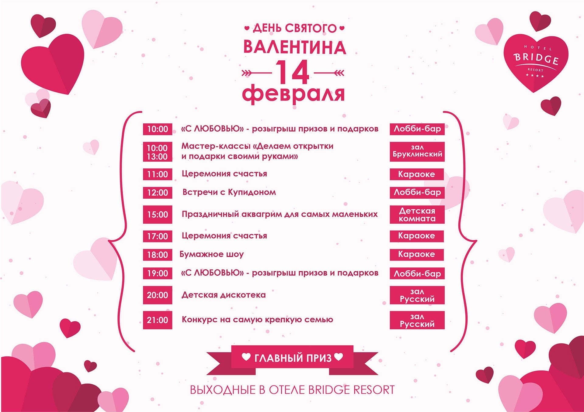 Праздничная программа на 14 февраля в отеле Bridge Resort Сочи*