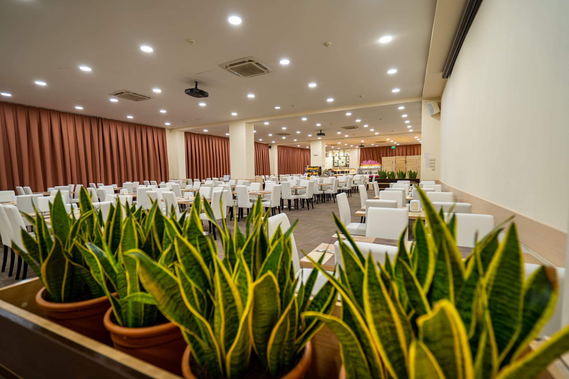 Прекрасная площадка для больших групп до 600 человек. Одинаково хорошо подходит для деловых и торжественных мероприятий. Рассадка до 500 человек театром, до 270 человек на банкет, до 600 человек на фуршет. Площадь зала 500 м2. К залу примыкают гардероб, туалетные комнаты, гримерные, технические комнаты, которые можно использовать в качестве склада инвентаря и т.д. Имеет как внешний вход с территории, так и внутренний из лобби отеля. Специально выделенные зоны для кофе-брейков и регистрации участников. Оборудование: флипчарты, три мультимедийные проектора, три экрана для трансляции изображения, современная система звукоусиления.