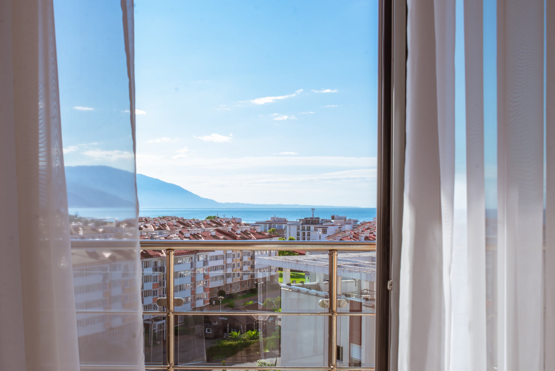 Вас встречает просторный номер, наполненный светом и уютом, расположенный в главном корпусе отеля Bridge Resort. Стены окрашены в нежные пастельные тона, а большие окна ловят каждую лучику солнечного света, наполняя пространство теплом.
