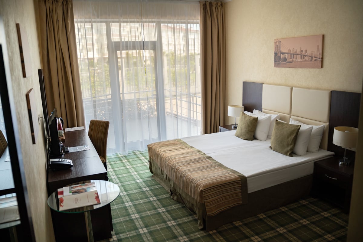 Уютные однокомнатные номера на первом этаже без балкона в типовых корпусах комплекса, оформлены в английском стиле. Площадь номера 25 м2.