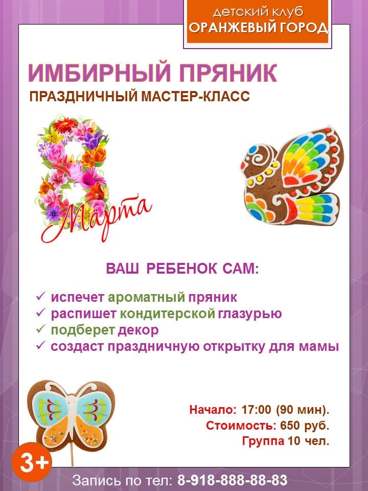 Ждем всех 8 марта на мастер-класс «ИМБИРНЫЕ ПРЯНИКИ»!