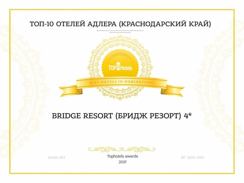 Напомним, Bridge Resort ежегодно становится лидером рейтингов туристического портала TopHotels.